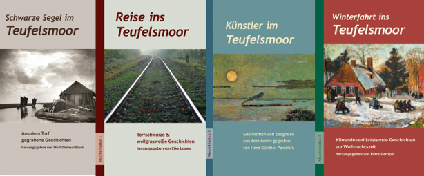 Vorgestellt werden die Bücher Schwarze Segel im Teufelsmoor, Reise ins Teufelsmoor und Winterfahrt ins Teufelsmoor aus der Moorbibliothek des Fischerhuder Verlages Atelier im Bauernhaus.